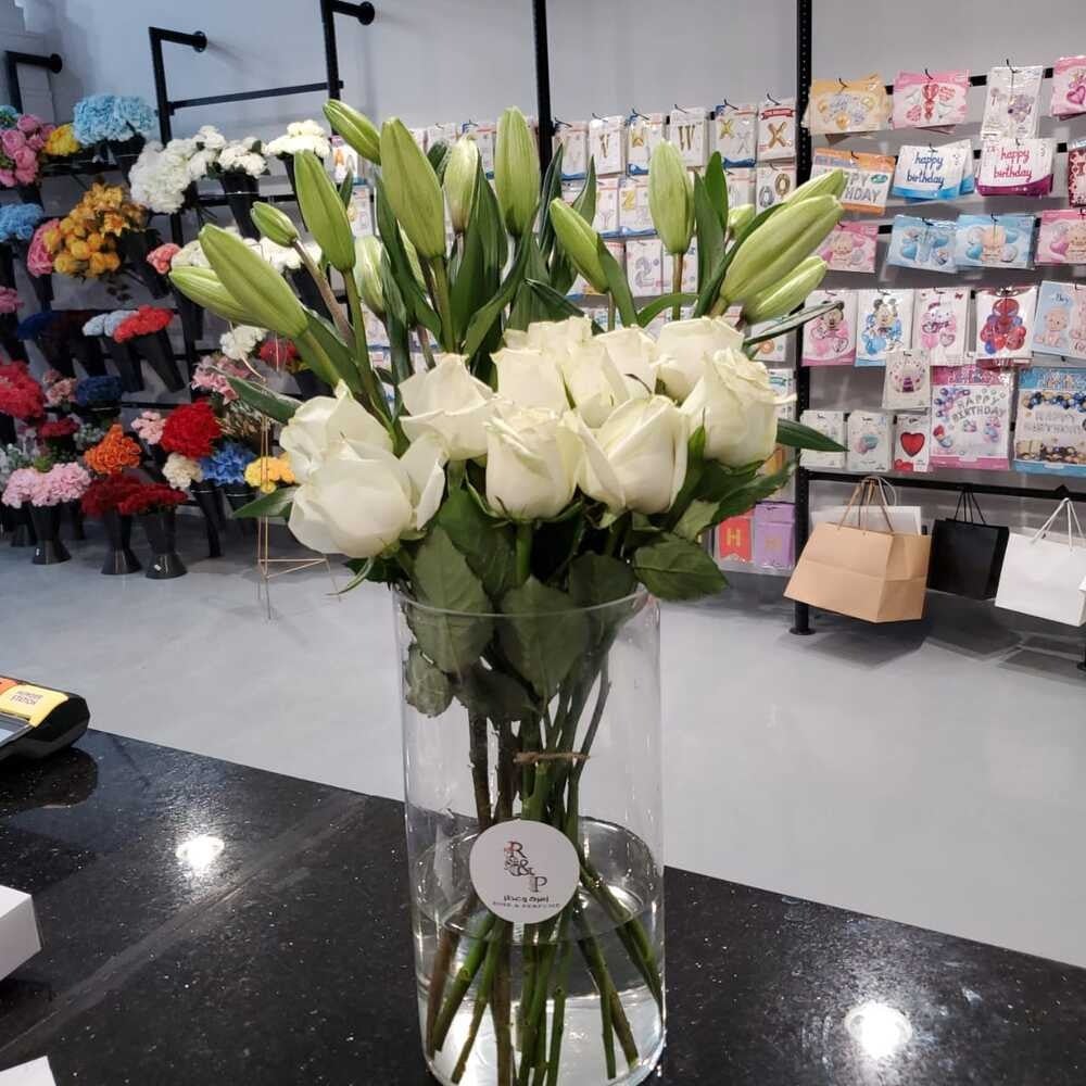 لليوم مع ورد جوري ابيض  lilyawm with white roses