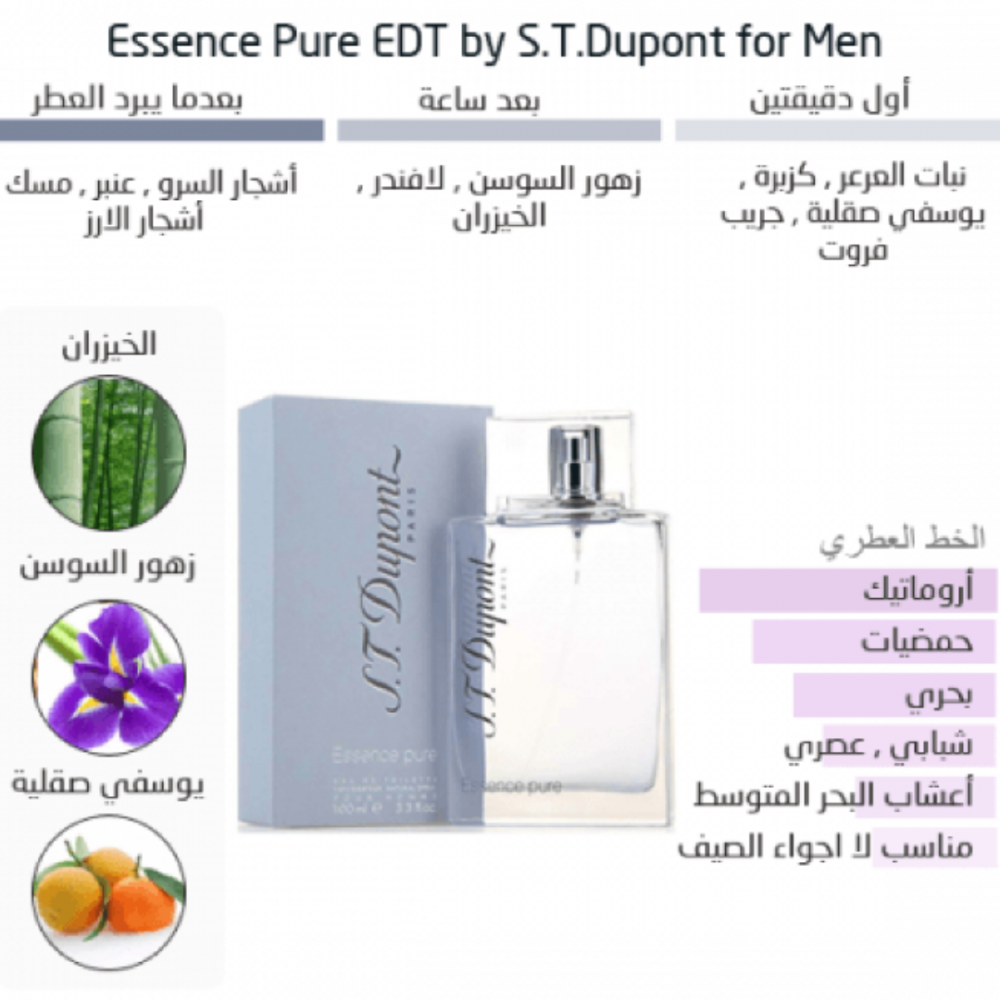 اس.تي. او دي تواليت اسينس بيور للرجال من اس.تي دبونت، 100 مل S.T. Dupont Essence Pure for Men Eau de Toilette 100ml