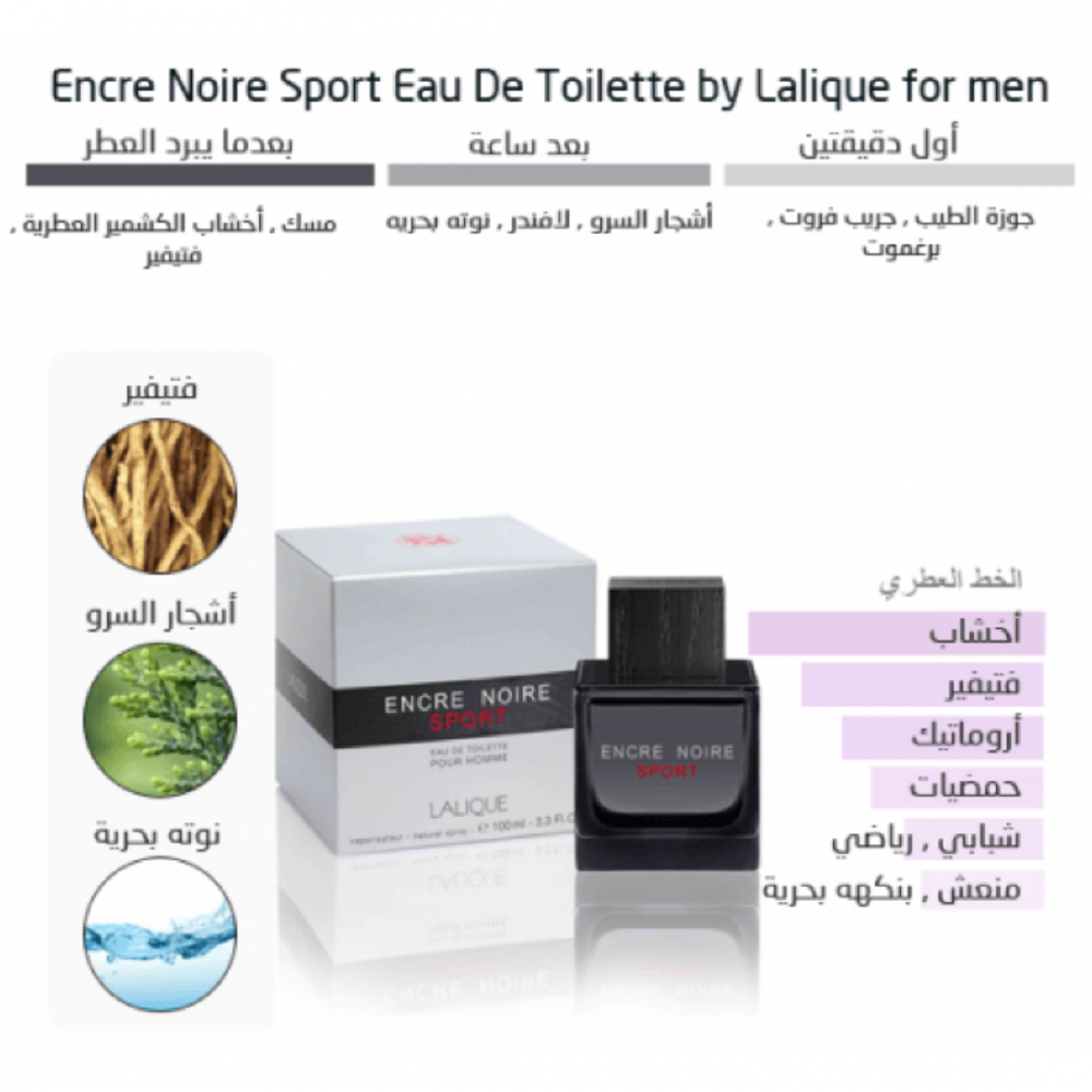 عطر لاليك نوار سبورت انكري اي دي تواليت للرجال 100 مل Lalique Encre Noire Sport Edt For Men 100 Ml